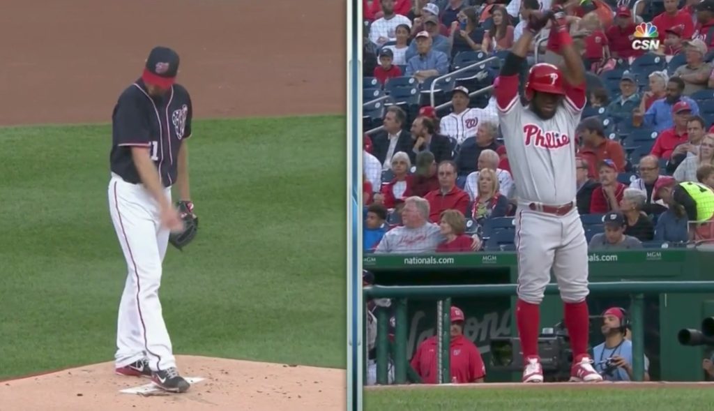 Scherzer’s government-issued cage was so rattled that he walked the next batter on four pitches before giving up a three-run blast to Nick Williams (this team is fun again!)… followed by Maikel Franco popping out on the first pitch the next at-bat.