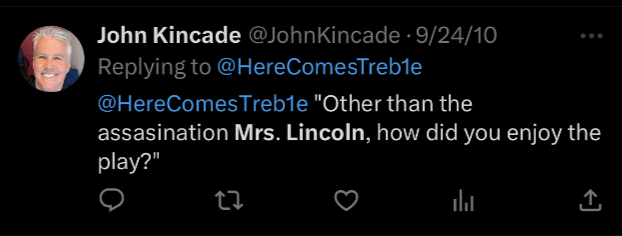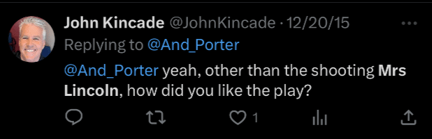 By the way Mrs. Lincoln, other than the shooting, how did you like the play?