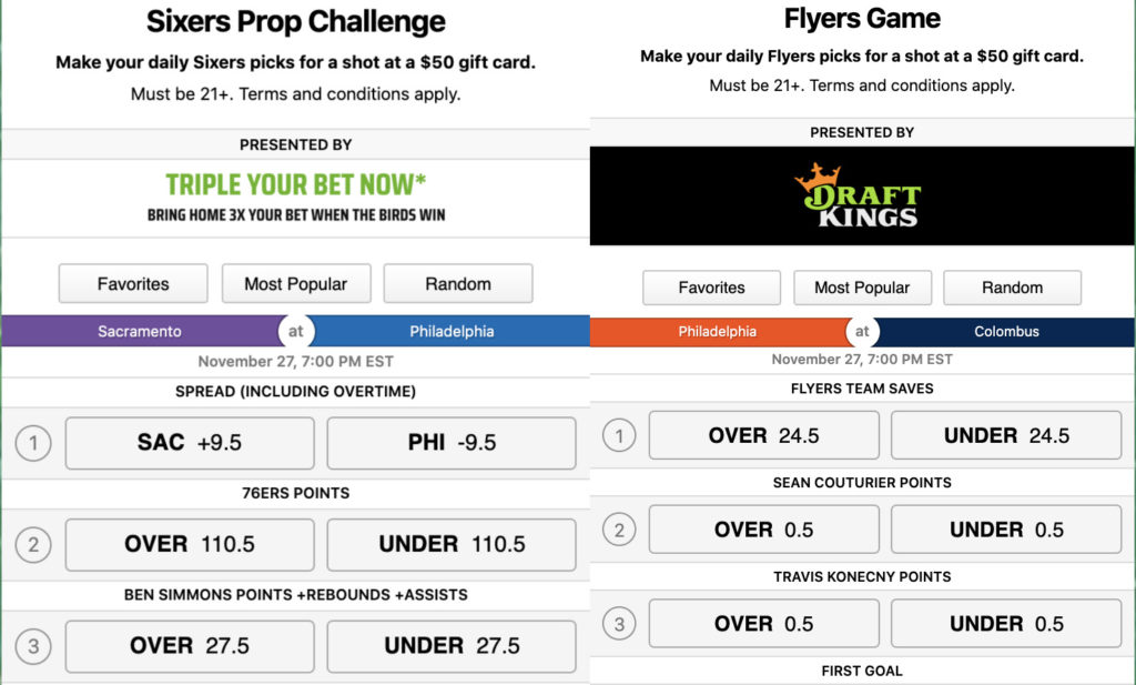 We’ve got a double dose of our free daily game contest! The Sixers host the Sacramento Kings tonight at Wells Fargo Center, while the Flyers are on the road taking on the Columbus Blue Jackets. Thanks to our friends at Chalkline, you can play our free Daily Sixers and Flyers Game contests and win prizes including a $50 gift card to the Crossing Broad Store! All you have to do is CLICK HERE for the Sixers contest and CLICK HERE for the Flyers game. Then, just enter your email and pick the following: