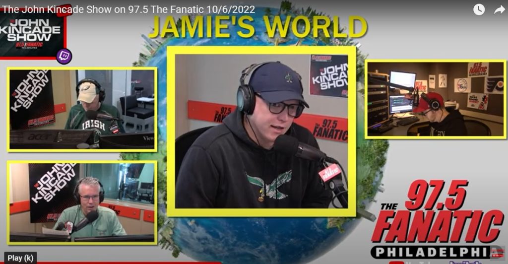 As I theorized Friday, Jamie’s departure was part of a larger wave of Beasley moves. They had to lay him off a day early because he was set to hop on a plane for Arizona, where the Eagles are playing this weekend. Instead, Kincade, Bob Cooney, Pat Egan, and a shit ton of Birds fans went out there. As expected, Friday’s morning show, live at some bar in Phoenix, had all of the enthusiasm and excitement of a sitting shiva session.