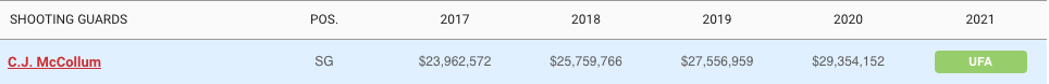 Bringing in a cap hit of nearly $26 million only makes sense if you’ve missed out on your top targets of LeBron, Kawhi, and PG13. If, however, the Sixers’ goal is to partner McCollum with LeBron, they’d have to shed some real salary: