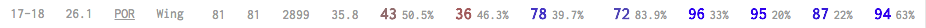 McCollum would certainly represent an improvement over the streaky play of Robert Covington and/or the unknown commodity of Markelle Fultz. His shot distribution is much more balanced than that of the aforementioned Covington and Fultz: