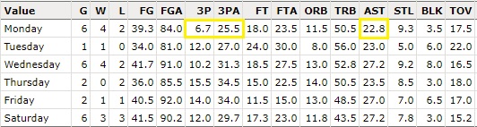 You see the three-point numbers there. The Sixers are only shooting 26.3% on Mondays.
