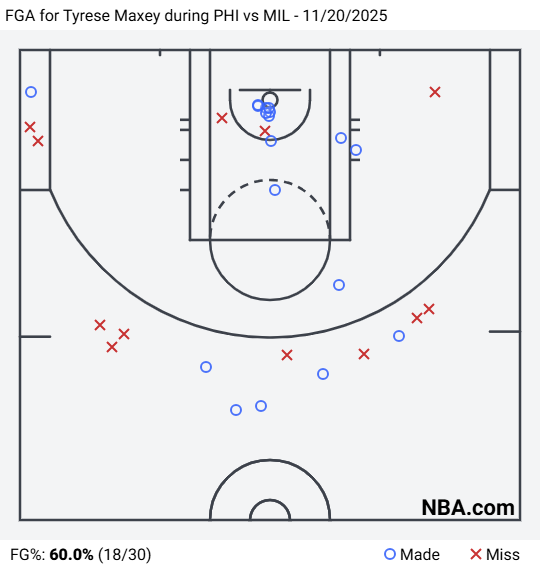Along with a Career-High 54 Points in Milwaukee, Tyrese Maxey Has Career Highs in Basically Everything