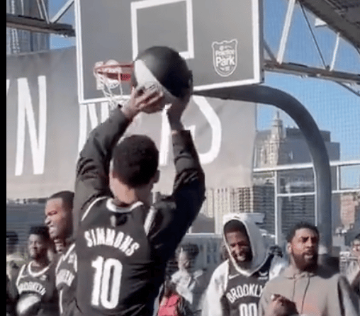 You know how they have those signs at baseball games that tell you to be alert for bats and balls down the first and third baseline? The Nets might have to install signs for fans sitting under the basket. Ben Simmons shooting is a lawsuit waiting to happen. Kyrie’s going to miss games this season because of a different shot: