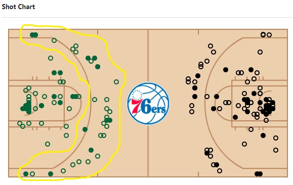 Another reason for the disparity, despite simply allowing the Sixers more offensive possessions, is that Boston didn’t spend a ton of time in the paint or drive much to the rim. 32 of their their 75 shots were three pointers, so the overall sample of plays that could garner contact at or near the basket is just much smaller than the Sixers. Of course you could look at how Philly defended on the perimeter and try to identify perceived clutching and grabbing, but most NBA fouls are called inside the paint and not on the outside.