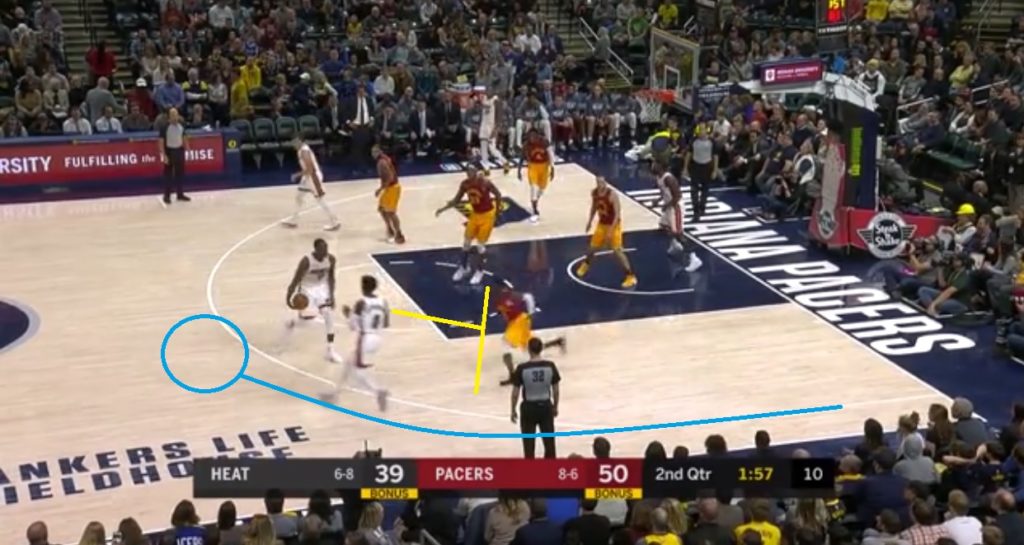 Just a little weave motion right there and you see the same DHO and counter that I clipped with Redick above. Richardson is able to step through there and pull up for a long two despite the rear contest.