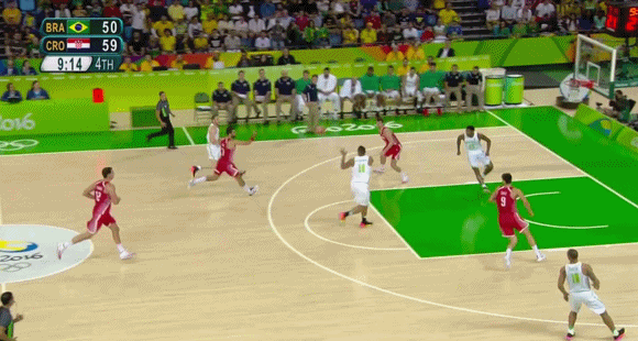 Dario Saric, dubbed the Ben Simmons of Croatia by The Ringer, is crushing it at the Olympics. He’s averaging 13 points, 8 rebounds and 5 assists. His Croatian team is 2-1 and just beat Brazil. Saric hit two big shots down the stretch, and pulled off this unbelievable block-pass combo. Here, I narrated it for you: