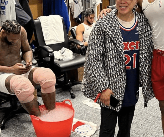 Do you think the Sixers training staff wastes another bucket? Or is this like a 2-for-1 special where Joel Embiid soaks his feet and then DJ gets the leftovers? That poor trainer is immediately transported back to pledging when he was in charge of the ice for the frat parties. Now he just has $100k in crippling student loan debt and he’s carrying out 50 pound tubs for a guy who sat on the bench all night. Guess it could be worse. He could be working for the Flyers.