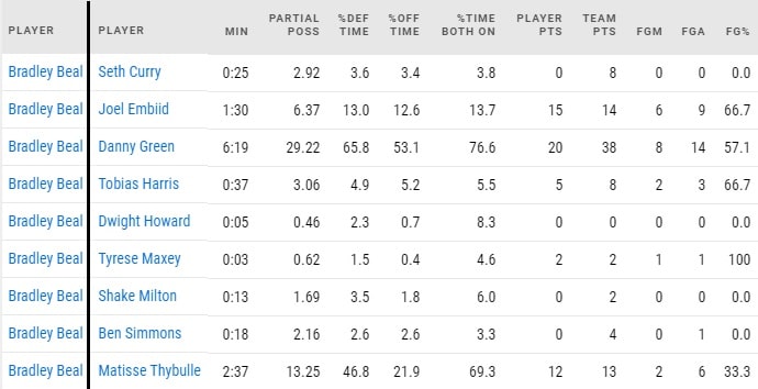 For what it’s worth, Simmons and Beal didn’t even spend 30 seconds matched up together on the Sixers’ end, according to the NBA.com data: