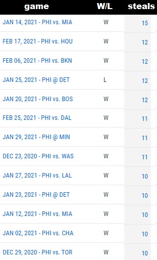 Specifically, the swipe number was ridiculously high, and the Sixers are now 12-1 when they steal the ball at least 10 times, as you see here: