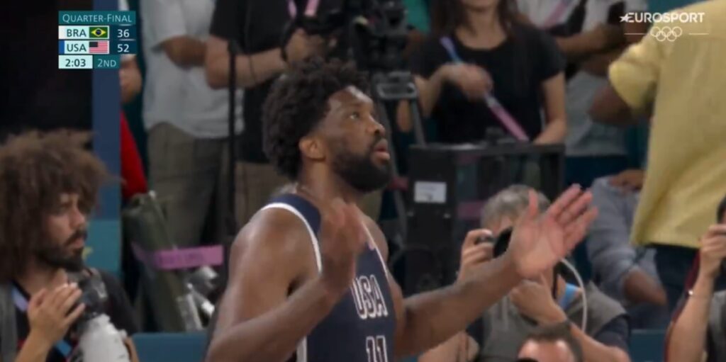 The United States hammered the everliving shit out of Brazil on Tuesday afternoon to advance to the men’s basketball Olympic semifinals. Joel Embiid, who had a terrible game against Serbia and didn’t play against South Sudan, is getting comfortable to the point where he’s now telling the French that if they’re not down with it, he’s got two words for them: