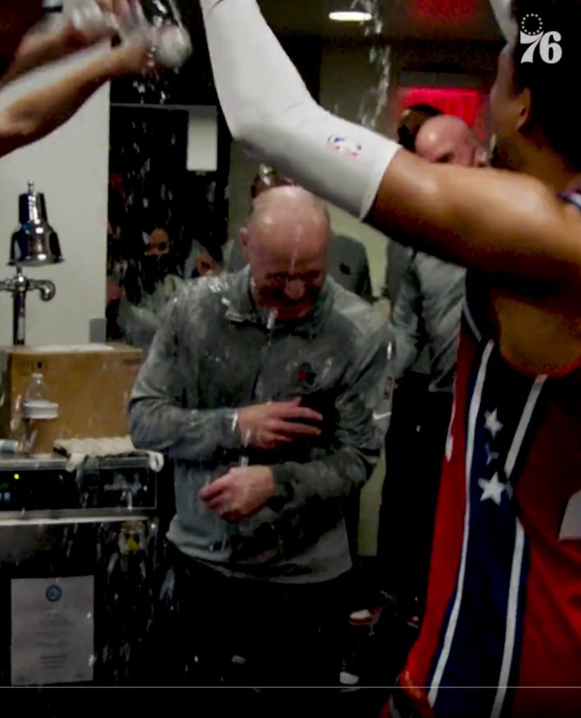 Fill-in Coach Dan Burke Drenched After Sixers Pull Off Their Best Win of the Season