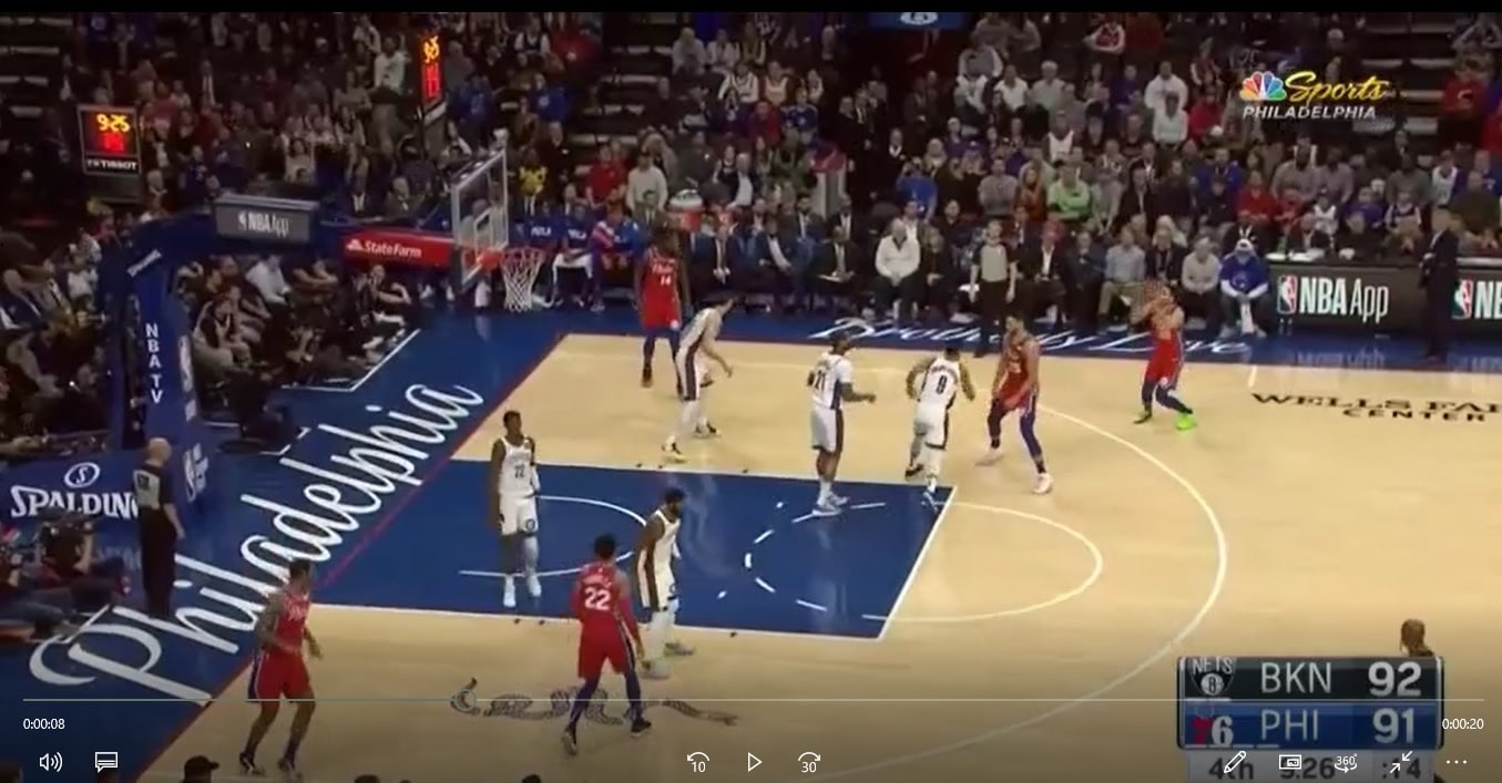 They ran this about a bazillion times with JJ Redick last year, and I’ve written about it occasionally, but it’s interesting to see how Brown uses this play without the veteran sharp shooter. He’s experimented with different players running this set, and last night, Furkan Korkmaz hit the second of his consecutive fourth-quarter three pointers on the slip portion of the play: