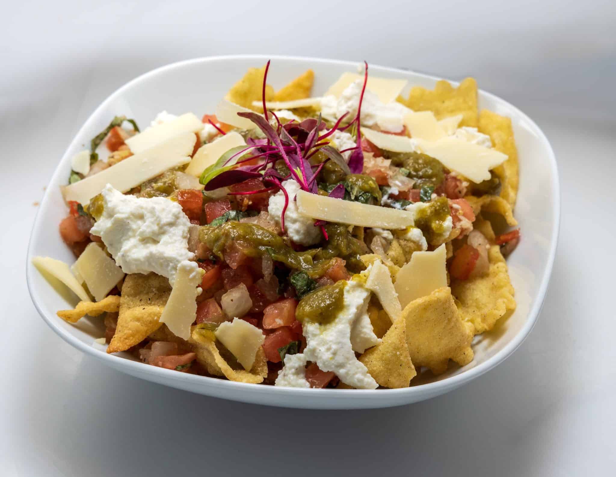 • Pastachos (Pasta Chip Nachos): Lasagna Crisps| Balsamic Bruschetta | Lemon Pepper Ricotta | Long Hot Relish | Shaved Parmesan