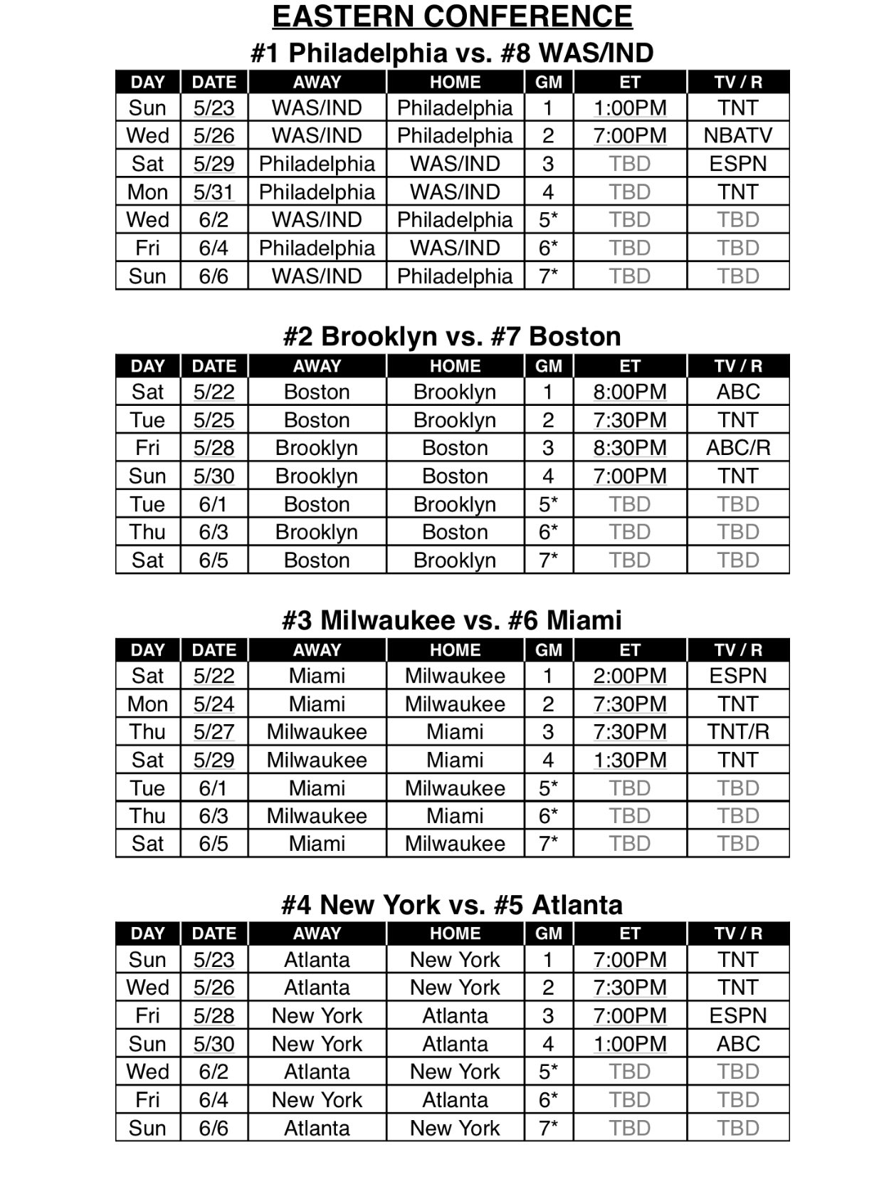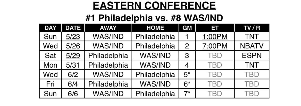 The Wizards and Pacers play tonight at 8 p.m. so the afternoon game means it’ll be about 40 hours between play-in game and the start of round one. The NBA gave the 7 p.m. game on Sunday night to New York and Atlanta and then they had to go 3:30 eastern and 9:30 eastern to facilitate the west coast teams being a few hours behind.