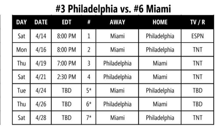 They’ll get two days off between games two and three, which might be perfect to get Joel Embiid back in the fold. There’s also two days off in between games four and five.