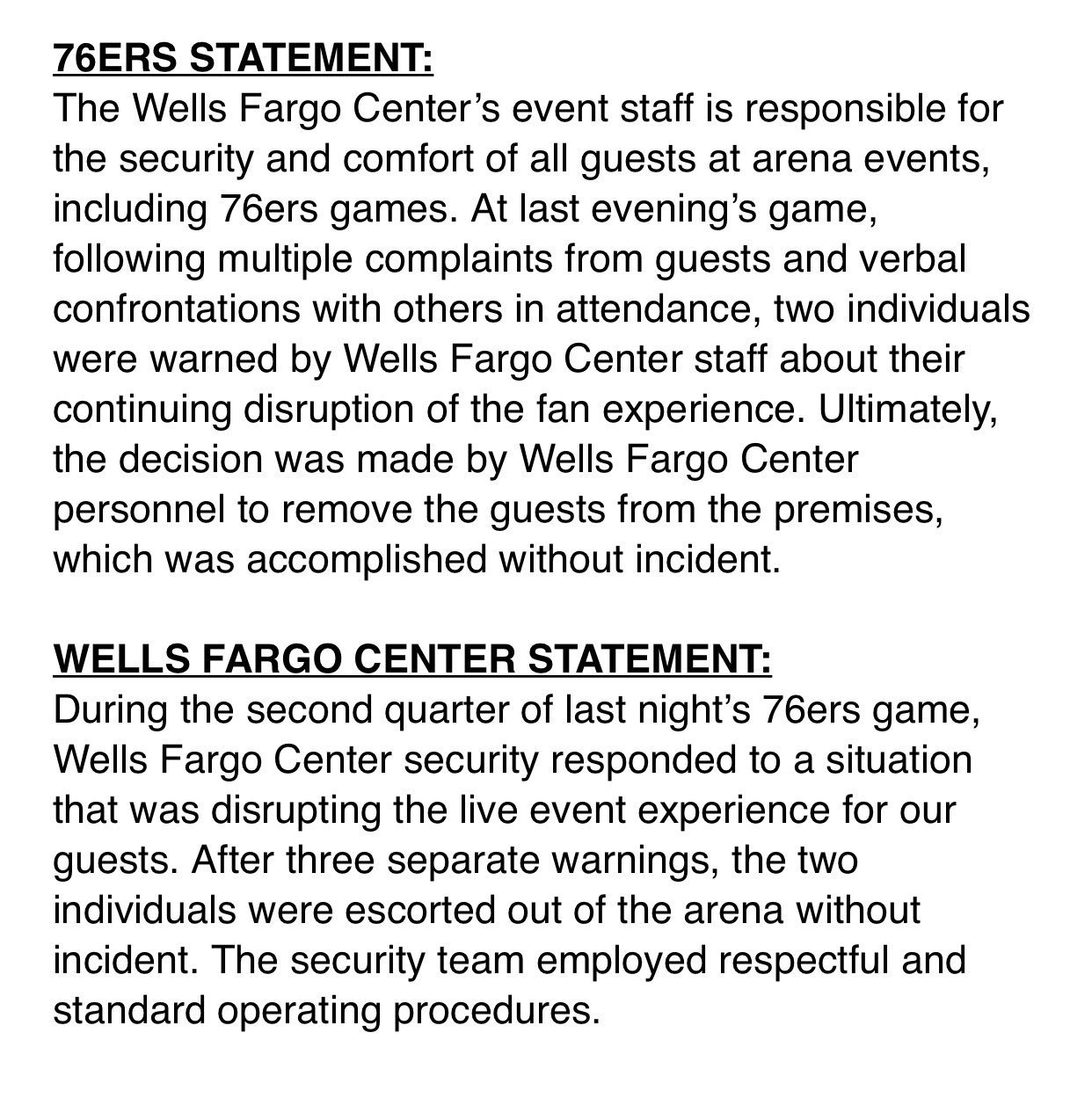 Here’s the Sixers’ Statement on Tuesday Night’s Fan Ejections