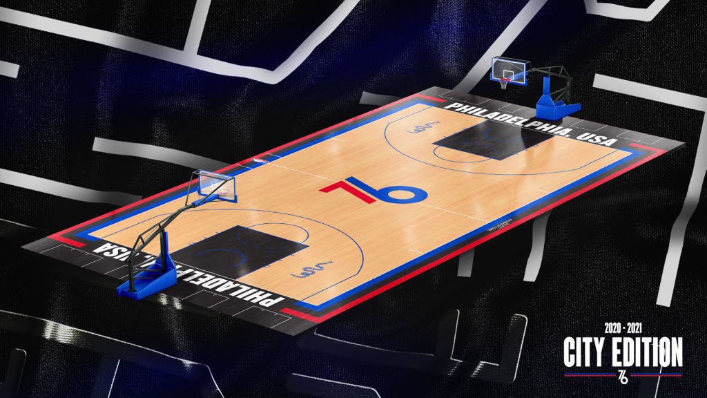 We all thought they might throw it back to the Allen Iverson days with a 2001 redux, but instead this season’s City Edition jerseys and on-court branding will look like this, photos courtesy of Zach Lowe and ESPN: