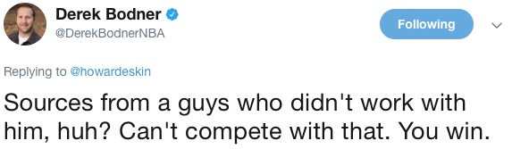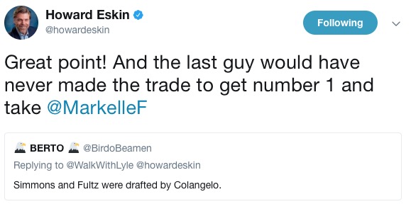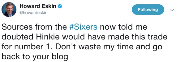 It all started when Eskin, once again, took aim at Sam Hinkie for something he literally didn’t have a chance to do: