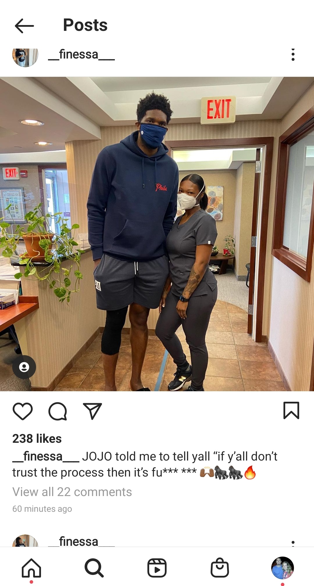 This photo just popped up on social media. It appears to be a from a nurse/medical/healthcare worker and/or tech (obviously not sure what her proper title is), who is standing next to Joel Embiid, who has his knee in a soft wrap. He was scheduled to have an MRI today: