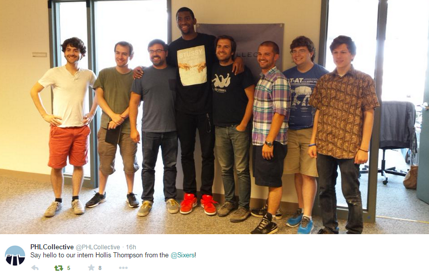 You see, Hollis Thompson is a nerd. It’s something that’s becoming more and more accepted in the pro athlete community, but he still can’t find anyone who shares some of his super-nerdy interests. “Growing up it’s kinda like a stigma,” Thompson told me yesterday in the offices of indie game developers PHL Collective. “If you play basketball, [then] you play basketball, you go out and party, you don’t really do arty stuff. I do all that stuff.”