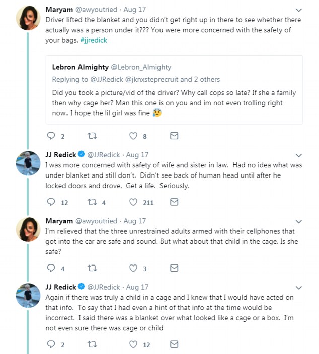 The long and short of it is that JJ thought a human being might have been inside the cage, but he wasn’t sure. He took a LOT of heat from random folks online because they don’t think he did enough to address a problem that they thought could have been serious – human trafficking, child abduction, something along those lines. Redick was with his wife and sister-in-law at the time and asked the driver to pull over. They got into a taxi instead.