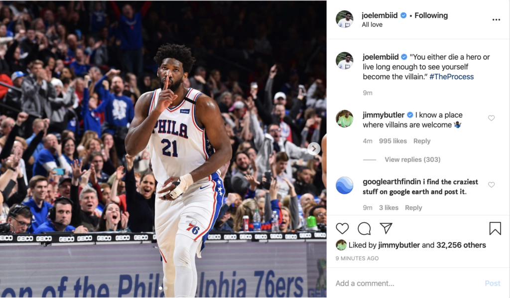 Joel Embiid on Instagram: “You Either Die a Hero or Live Long Enough to See Yourself Become the Villain”