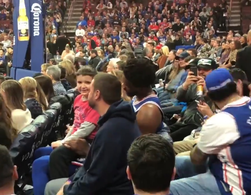 Problem is, a young kid was already sitting there. So Embiid did what anybody would do, and let the kid sit on his lap instead: