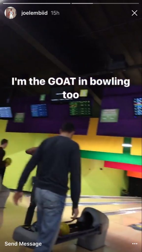 Joel Embiid out here on Instagram Live bowling like Andrew Bynum never happened to this city