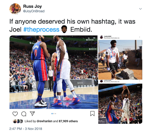 I know it’s early in the season to make a case for MVP, but while the national media finds itself enthralled in Giannis Antetokounmpo’s breakout season, I’d prefer to focus on a seven-footer who’s shooting better than 5.9% from deep – yes, seriously, Giannis is 1-for-17 on the year from three – and his name is Joel Hans Embiid.