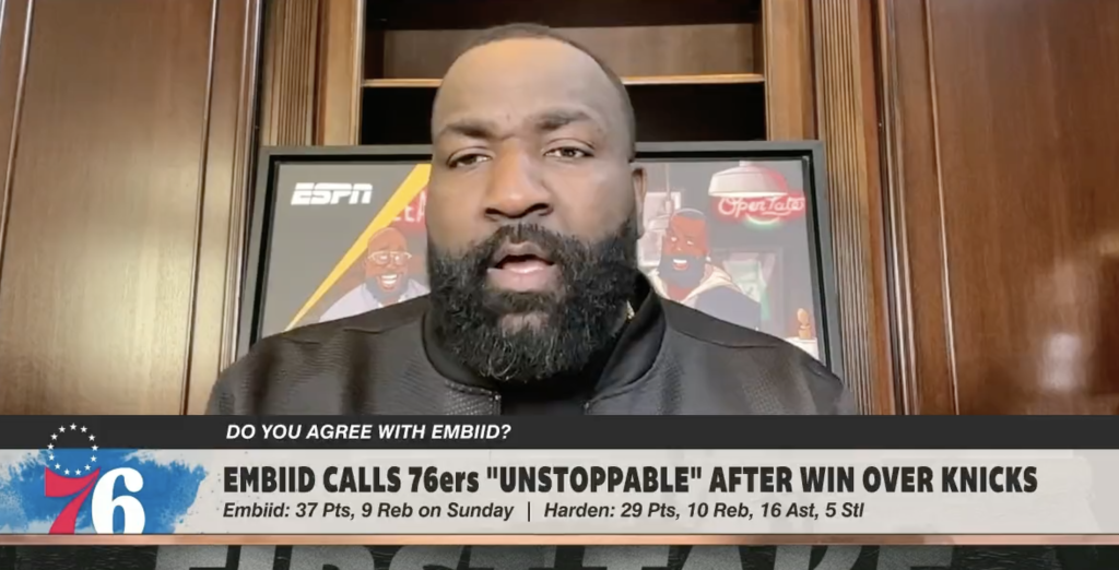 Kendrick Perkins went on First Take and said James Harden and Joel Embiid have the ceiling of Magic and Kareem: