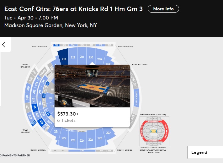 What are we looking at here? We’re looking at prices for Game 5 in Madison Square Garden. On Ticketmaster, the cheapest thing I could find as of 9:30 a.m. was $485 for a seat in the hinterlands portion of the arena. There are only a handful of tickets in the lower bowl less than $1,000, while some of the courtside seats are going for upward of $5,000, $8,000, even $10,000.