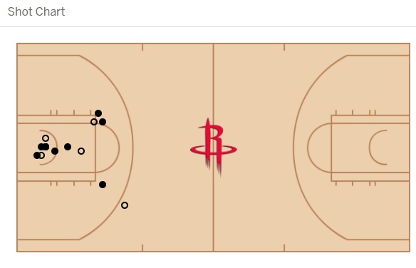 For three point comparison, Houston shot 12-39 (30.8%) in Philadelphia but just 13-47 (27.7%) last night. 47 three-point attempts!