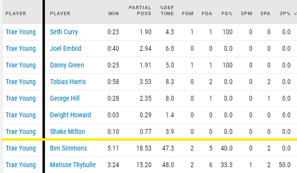 But the big takeaway is that Rivers got away from the all bench group and staggered starters into the second unit. We can start looking ahead to some Shake Milton lineups in Game 3 and go back over the regular season and see how he performed with different groupings.
