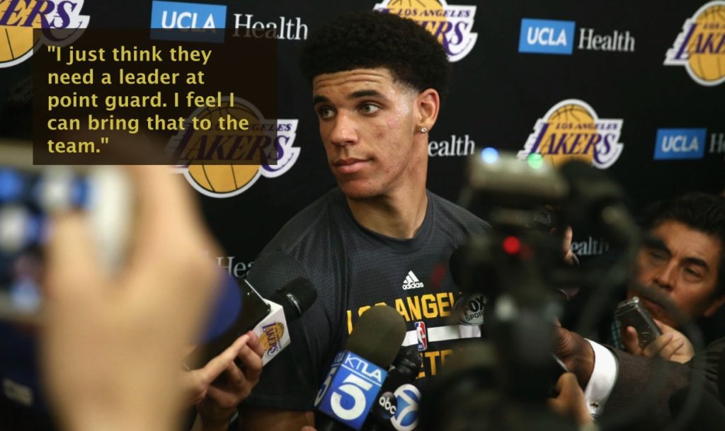 Lonzo on the Lakers: "They have a lot of good players. I just think they need a leader at point guard. I feel I can bring that to the team."