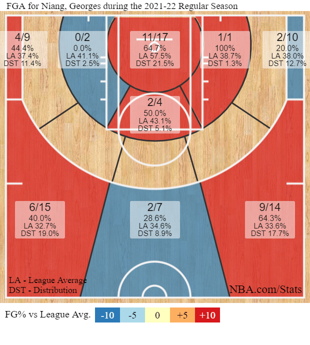 • Niang has never been a playmaker, but this year has a team-high 3.20 assist/turnover ratio.