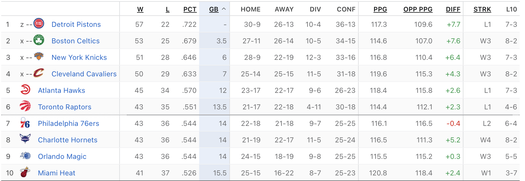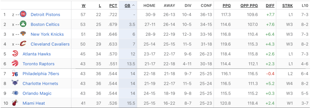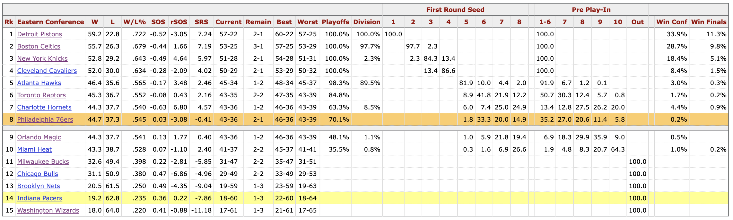 If the season were to have ended today, the Sixers would host a play-in matchup against the Hornets. If they are to win that, they would earn a first-round matchup with the Boston Celtics. If they were to lose this one-and-done matchup, they would face the winner of the Heat vs. Magic play-in game of the 9 vs. 10 seeds. The winner of this matchup would face the top-seeded Detroit Pistons in the opening round of the playoffs.