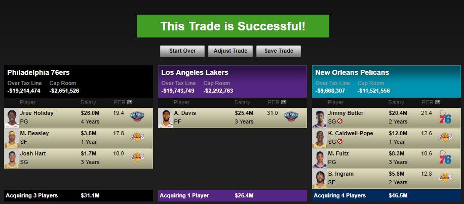Problem is, he’s got two more years at $26 million on his contract before hitting a player option for 2021-2022. You’d probably have to give up Fultz, Chandler, the Miami 1st rounder, and more picks to get Holiday, or else you’re looking at some sort of wonky three-way deal, maybe one that sends Anthony Davis out to Los Angeles.