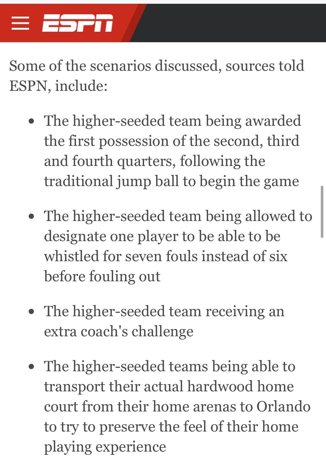 This gives your team, your town, your 76ers an opportunity to move up to the 4th or 5th seed, which would determine whether they play the Celtics or Heat in the first round (or somebody else if there’s a big shakeup). There is no home court advantage with 22 teams moving to a neutral location, but the league, according to ESPN, is discussing the following ideas in order to create some sort of alternative benefit for the higher seeds: