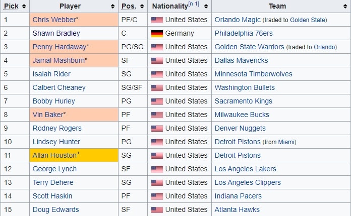 Sam Cassell and Nick Van Exel went later in the draft, passed up by a number of teams before selection. Lynch, of course, was added as a free agent and played on the Sixers team that went to the finals in 2001.