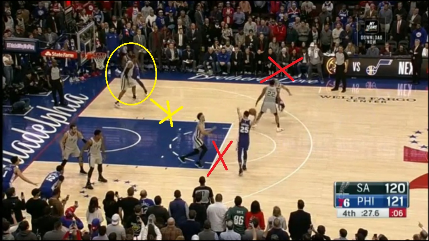 In those six San Antonio possessions, the Sixers got the following defensive results: