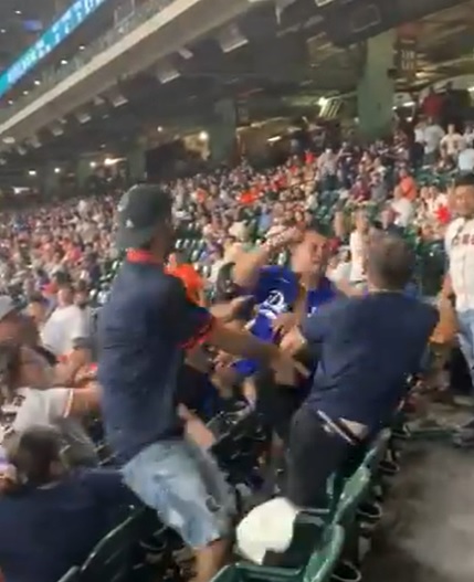 And it’s true! It’s 100% true. Just in the past 36 hours we’ve had other incidents beyond the Philly popcorn thrower, like this fight here, between Dodgers and Astros fans:
