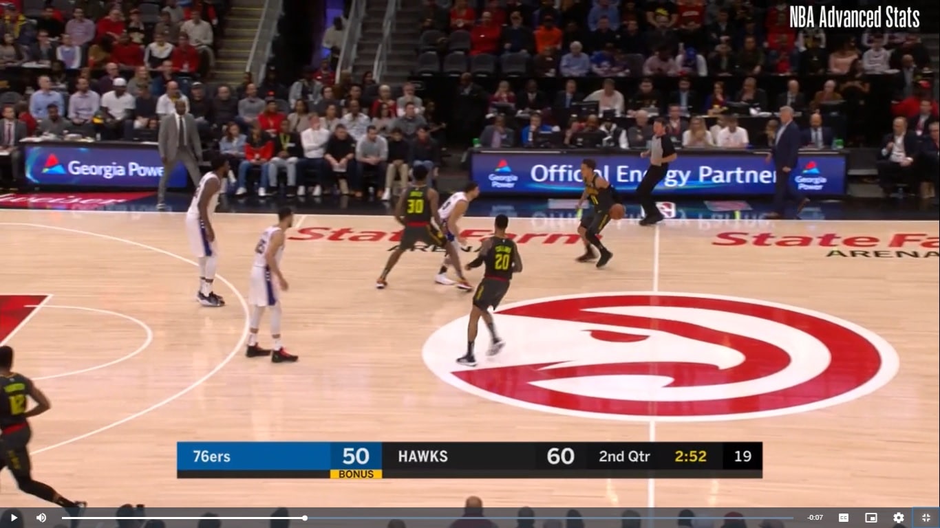 There’s a lot going on in that clip. You have some defensive ball watching in the paint, which allows the roller to finish plays when Young seems bottled up. You have Embiid playing “centerfield” or drop coverage but failing to impact either pick and roll player from saggy elbow positions. You have Ben Simmons going over a screen and Young still hitting a ridiculous shot anyway.