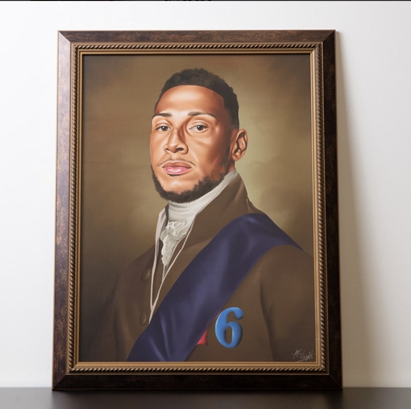A legitimately wonderful painting of Ben Simmons in the 18th century. According to scholars, the 18th century Simmons would only shoot his musket at targets less than 5-feet away, much to the consternation of the entire Continental Army at the time that implored him to fire away from longer distances. Absolutely fascinating.