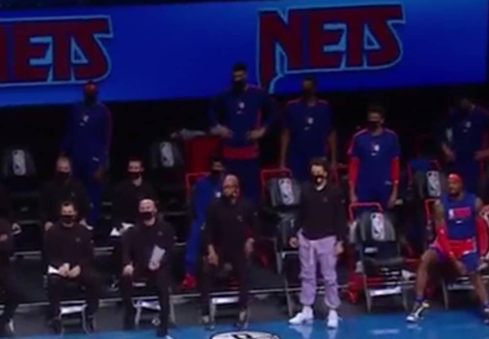 Curry, who was wearing a mask, was actually sitting next to Embiid on the bench when Joel came out of the game. Sam Cassell was on his other side and Dwight Howard spent some time in the vicinity, two seats over.
