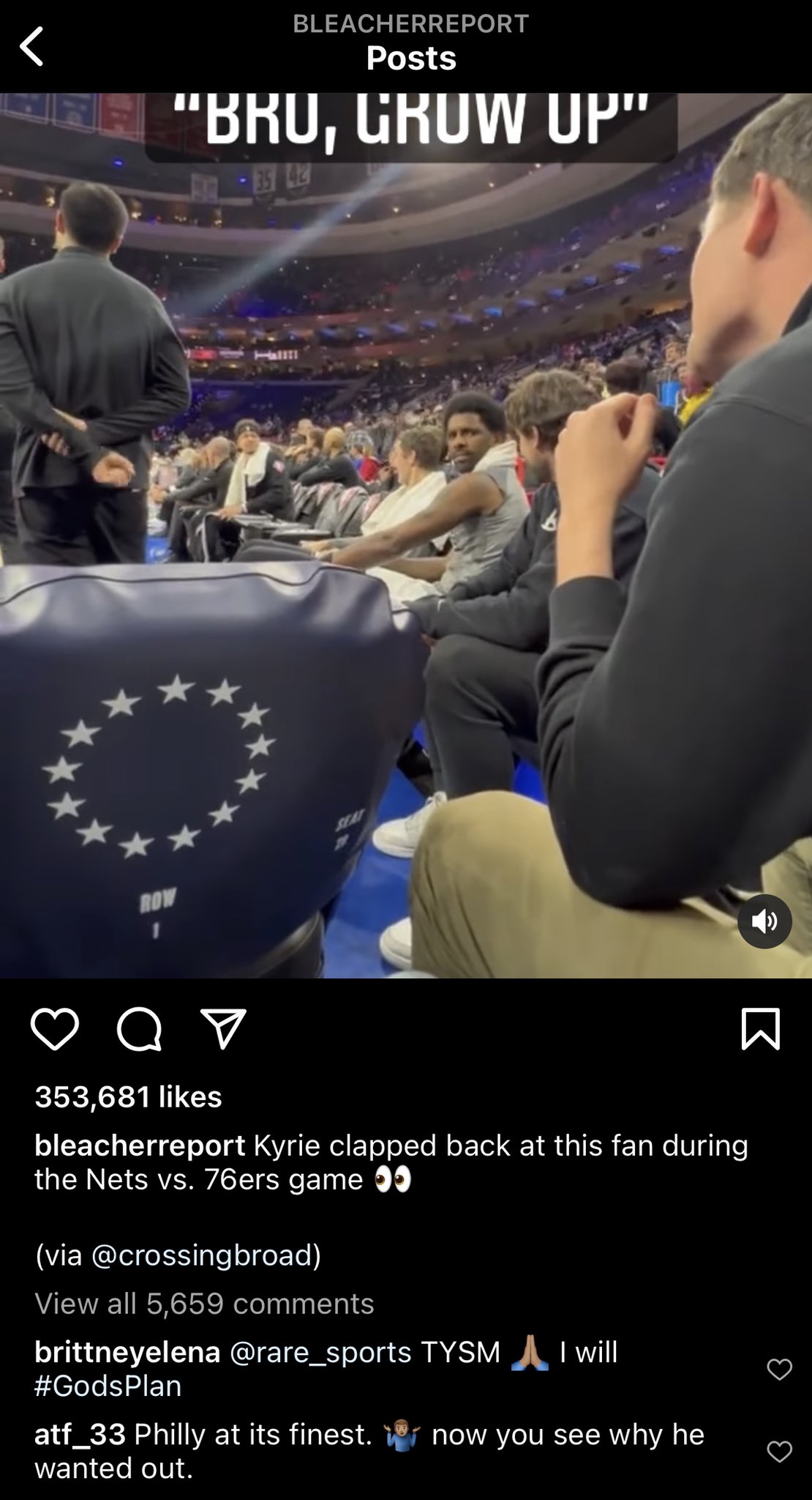If you missed it, Robert Covington posted a lame comment about Sixers fans. It was actually in response to our video clip with Kyle P and Kyrie Irving, which was picked up by Bleacher Report. Austin Krell then noticed that Covington responded on Instagram:
