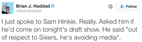 Sam Hinkie Turns Down WIP Draft Party Invite