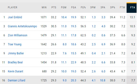That’s crazy. He’s averaging almost three more free throws per 36 than Giannis.