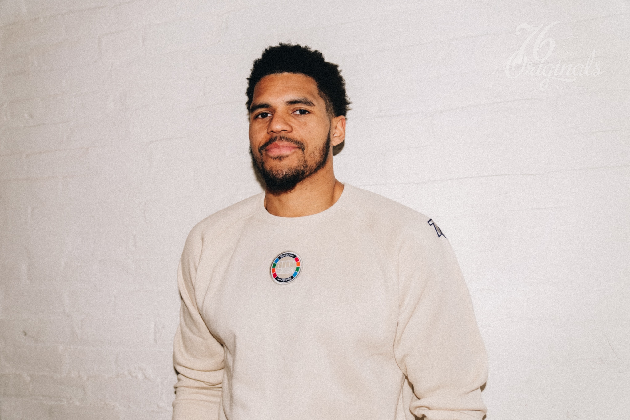 The inaugural capsule will include eight handpicked pieces that feature unique fabrics, lettering and patchwork and will be available in a variety of colors including navy and bone. The 1970’s style “Sixers” wordmark will be featured on both T-shirts and crewneck sweatshirts in addition to the Spectrum logo. The collection includes crewneck sweatshirts, a T-shirt and hats in collaboration with Sportiqe and New Era.